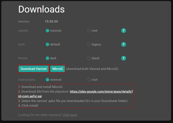 Micro G 다운로드 -> Download Vanced 다운로드 -> SAI Download 설치 -> Vanced 설치