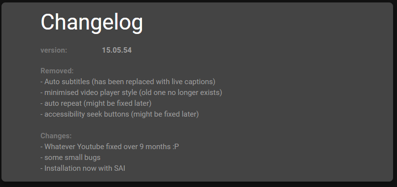 그리고 Changelog도 표시되어있네요. 잠깐 살펴보겠습니다.