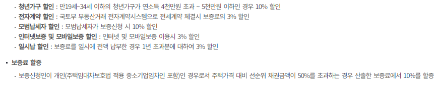 - 주택도시보증공사(HUG) : 전세보증금반환보증