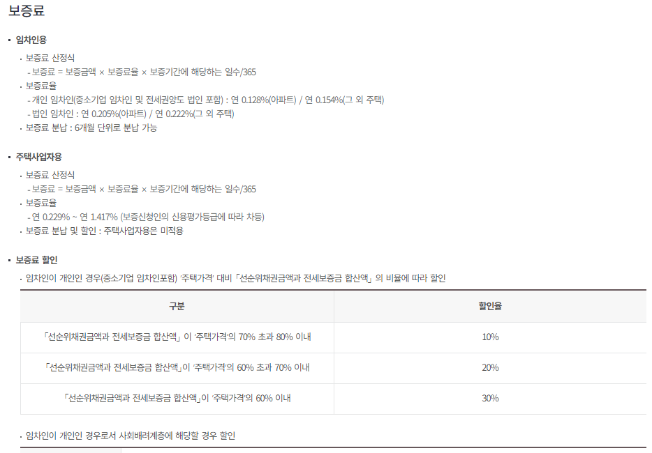 전세보증보험료는 전액 일시납 또는 6개월 단위로도 분납이 가능하며 세액공제도 가능합니다. 또한 LTV(선순위채권+전세보증금)은 구간에 따라 보험료 할인도 가능하다고 하니 참고하식기 바랍니다.