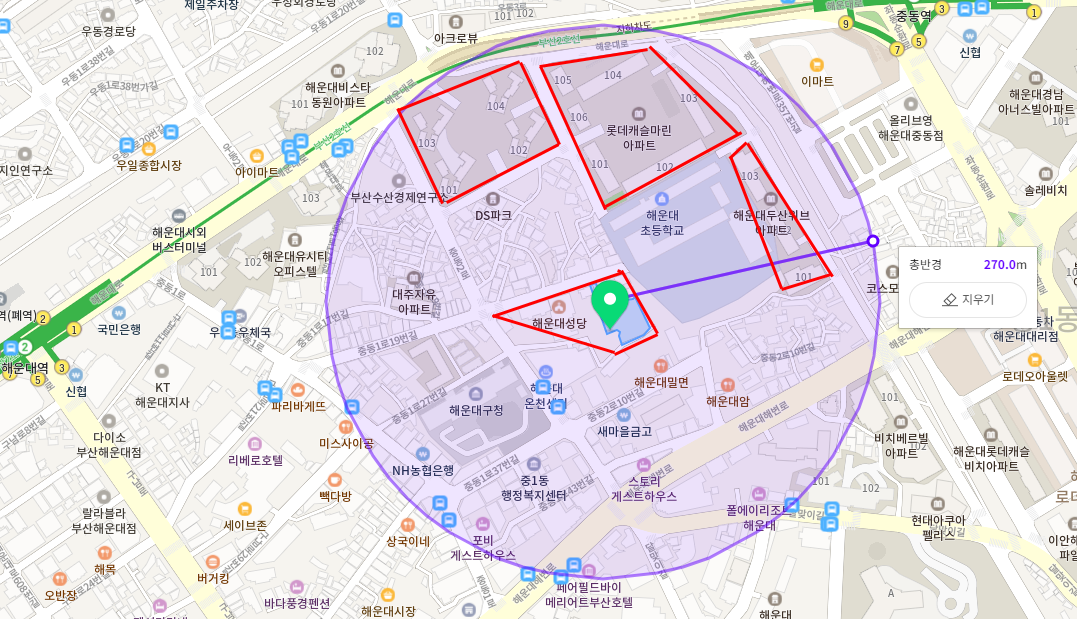 - 이마트 해운대점, 해운대구청, 엘시티 관광리조트단지