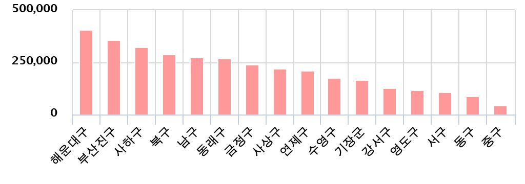 그리고 해운대구의 아파트 금액 대비 연령대를 비교해 본다면 경제적 여력이 있는 젊은 인구가 많이 산다고 판단됩니다.