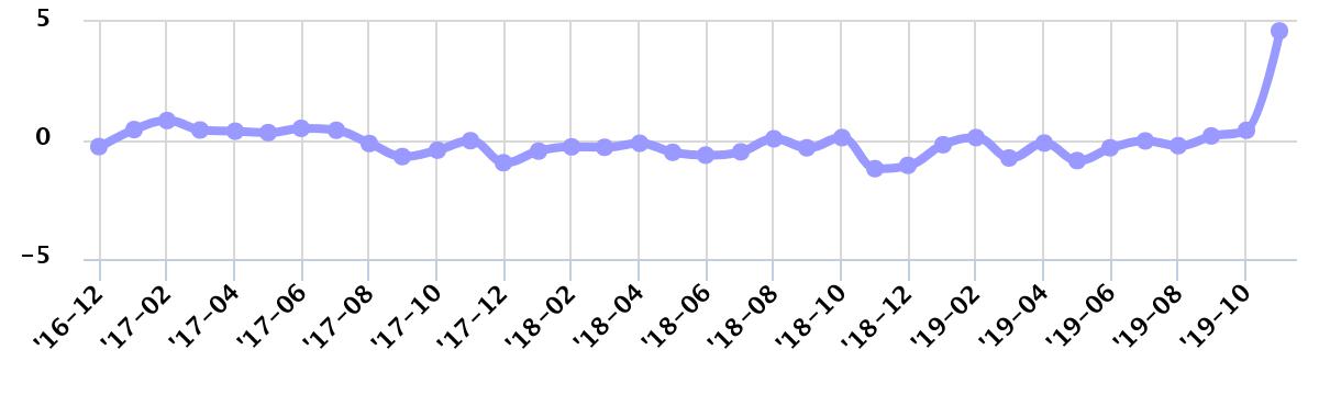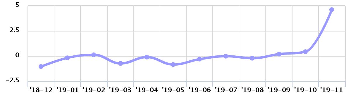 부산의 실거래 지수는 +를 기록하지만 최근 19년 하반기부터는 급등한걸 볼 수 있습니다.
