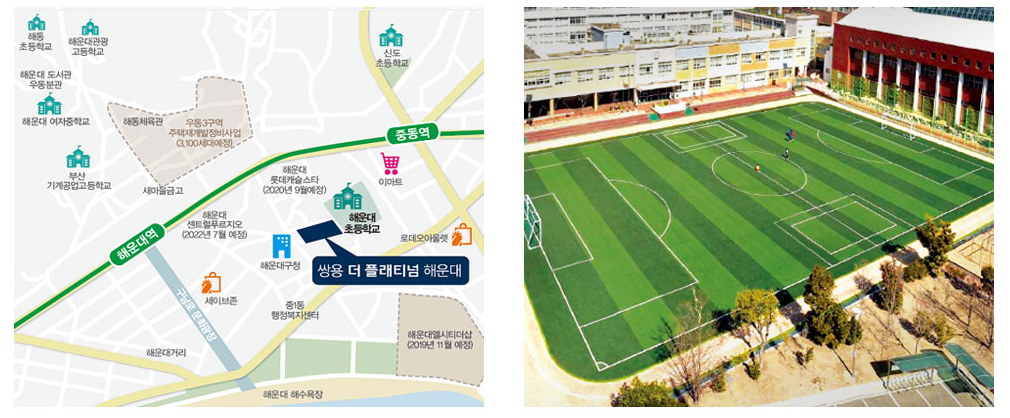 해당 아파트가운데에 해운대 초등학교가 있으며 진정한 초품아를 형성하고 있습니다.