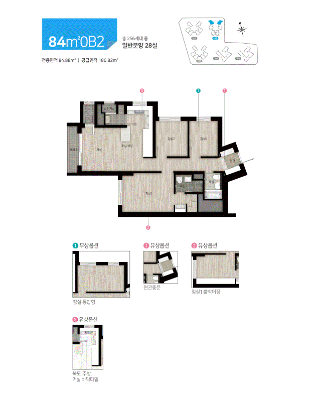 타입별 기본형/확장형을 정리해봤습니다. 평형에 따라 유상/무상옵션이 달라지는 점 참고하시고 상세 내용은 분양사의 홈페이지를 참고하시길 바랍니다.