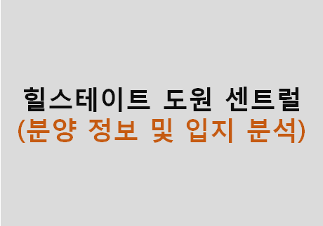 오늘은 힐스테이트 도원 센트럴의 분양정보 및 입지에 대해 분석해봤습니다.