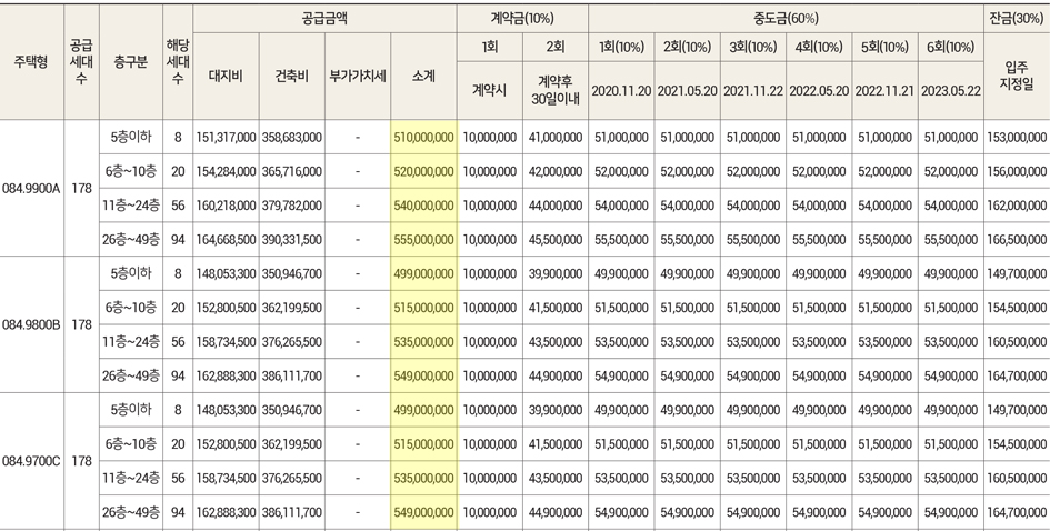 - 세대수 : 1150세대 (아파트 894세대, 오피스텔 256세대)